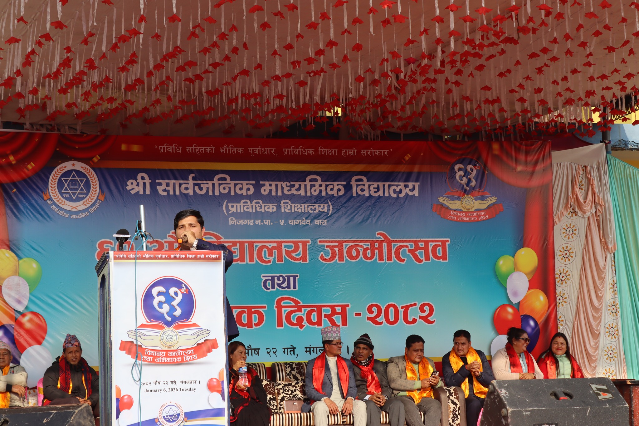 निजगढ–५ स्थित सार्वजनिक माध्यमिक प्राविधिक विद्यालय बागदेवको ६१औँ जन्मोत्सव तथा अभिभावक दिवस सम्पन्न भएको छ।